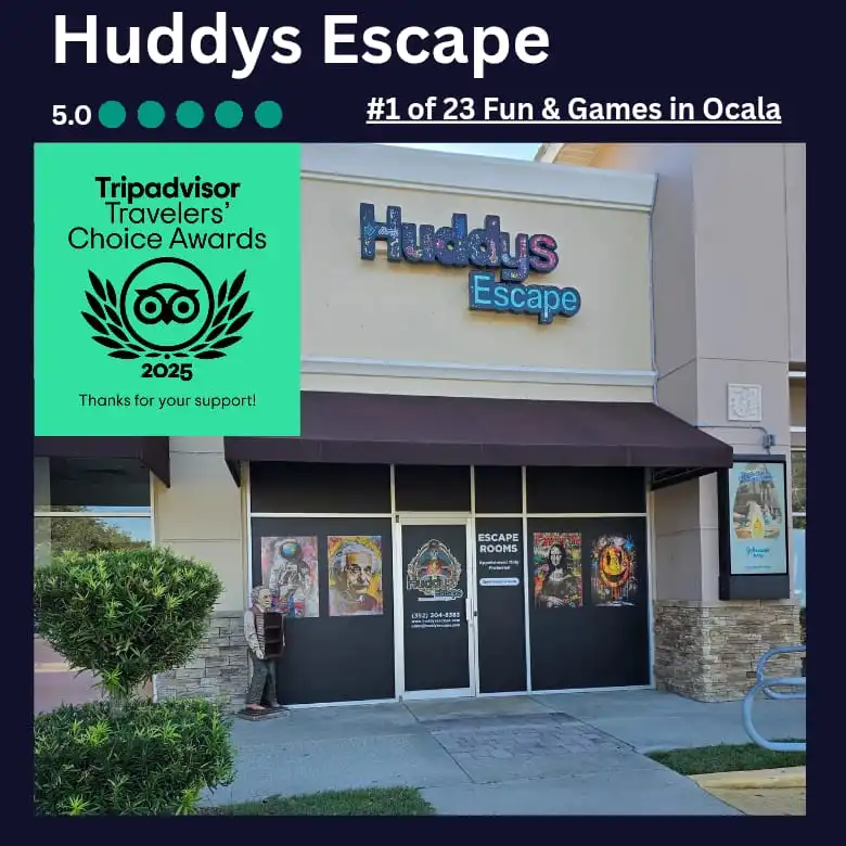 Posted on William DunnTrustindex verifies that the original source of the review is Google. An amazing experience. I have seen many escape rooms, and the different rooms at this establishment were some of the most unique and clever out of them all. You will have a great time herePosted on Kellie WardTrustindex verifies that the original source of the review is Google. We had a blast. Samantha was amazing. Highly recommended.Posted on Kailee RemmeleTrustindex verifies that the original source of the review is Google. Sam was phenomenal!! Had fun doing Jacob’s nightmarePosted on TayyyTrustindex verifies that the original source of the review is Google. Always an amazing time here! The newest ‘chronowhiskey the time echo protocol” was AMAZING!!!Posted on shannon CanepaTrustindex verifies that the original source of the review is Google. What a great experience!! Our game master Samantha made our experience even better. This was our 1st time at Huddys we will be back.Posted on Cindy NguyenTrustindex verifies that the original source of the review is Google. Samantha was a fantastic game master. Cant wait to come back for Jacob’s nightmare room.Posted on Lacey NewellTrustindex verifies that the original source of the review is Google. Cool vibes, fun props, really fun escape room! We will be returning! Samantha was a fine Game Master 🎩 🐉 🪄🧙♀️Posted on Maria MorenoTrustindex verifies that the original source of the review is Google. We had a great time at the escape room! Samantha, our game master, was friendly, helpful, and kept the game running smoothly. Definitely recommend all the rooms!Posted on Justin CarpenterTrustindex verifies that the original source of the review is Google. Our team had a great time and Samantha was a wonderful game masterPosted on Michael AdayTrustindex verifies that the original source of the review is Google. Best Escape Room in Gainesville! Samantha was outstanding! Jacobs Nightmares and ChronoWhiskey were awesome sause!